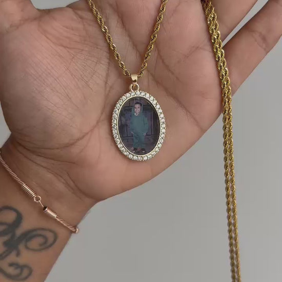 Cadena tejido lazo y dije ovalado personalizado con foto en acero inoxidable