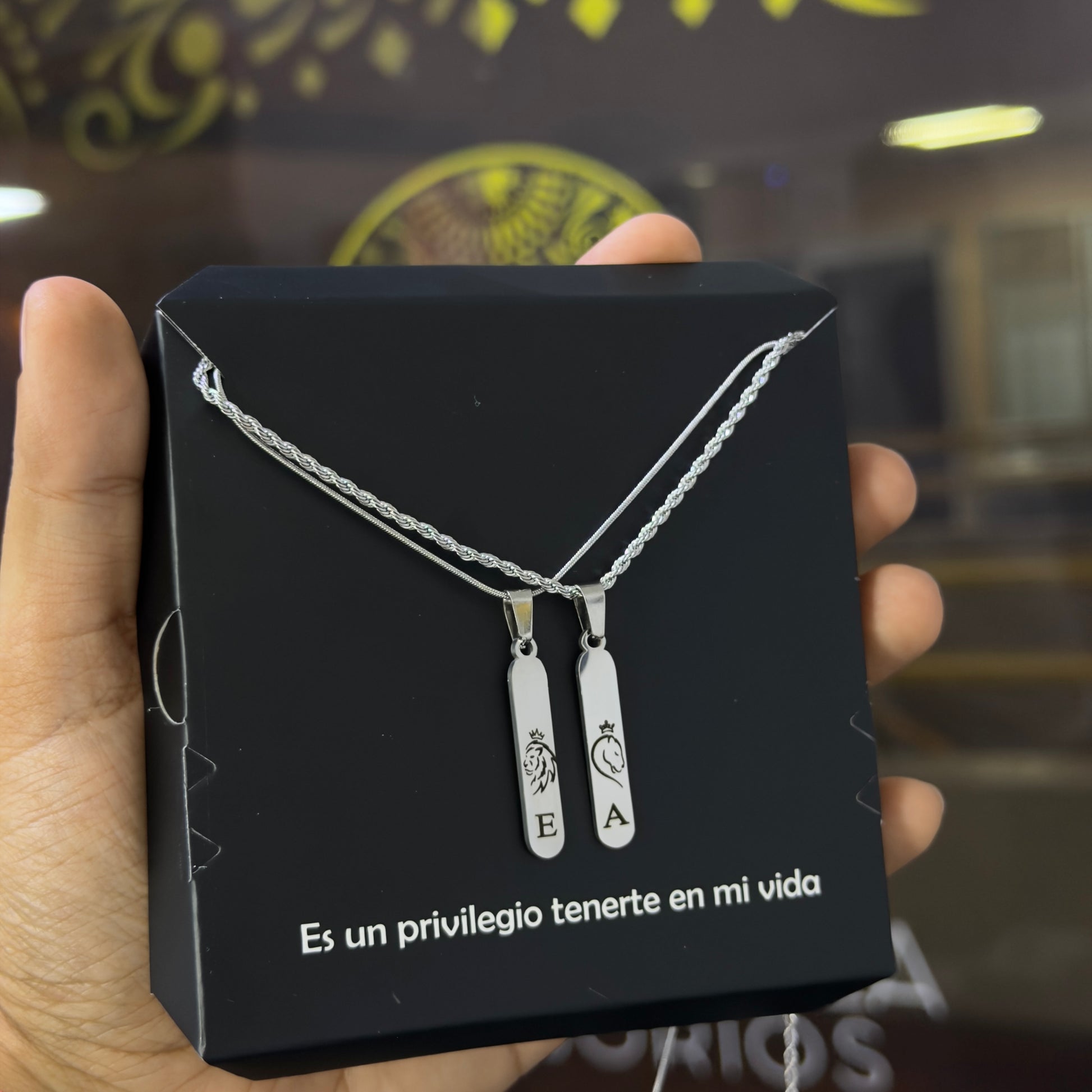 Cadenas con dije largo personalizado color plateado