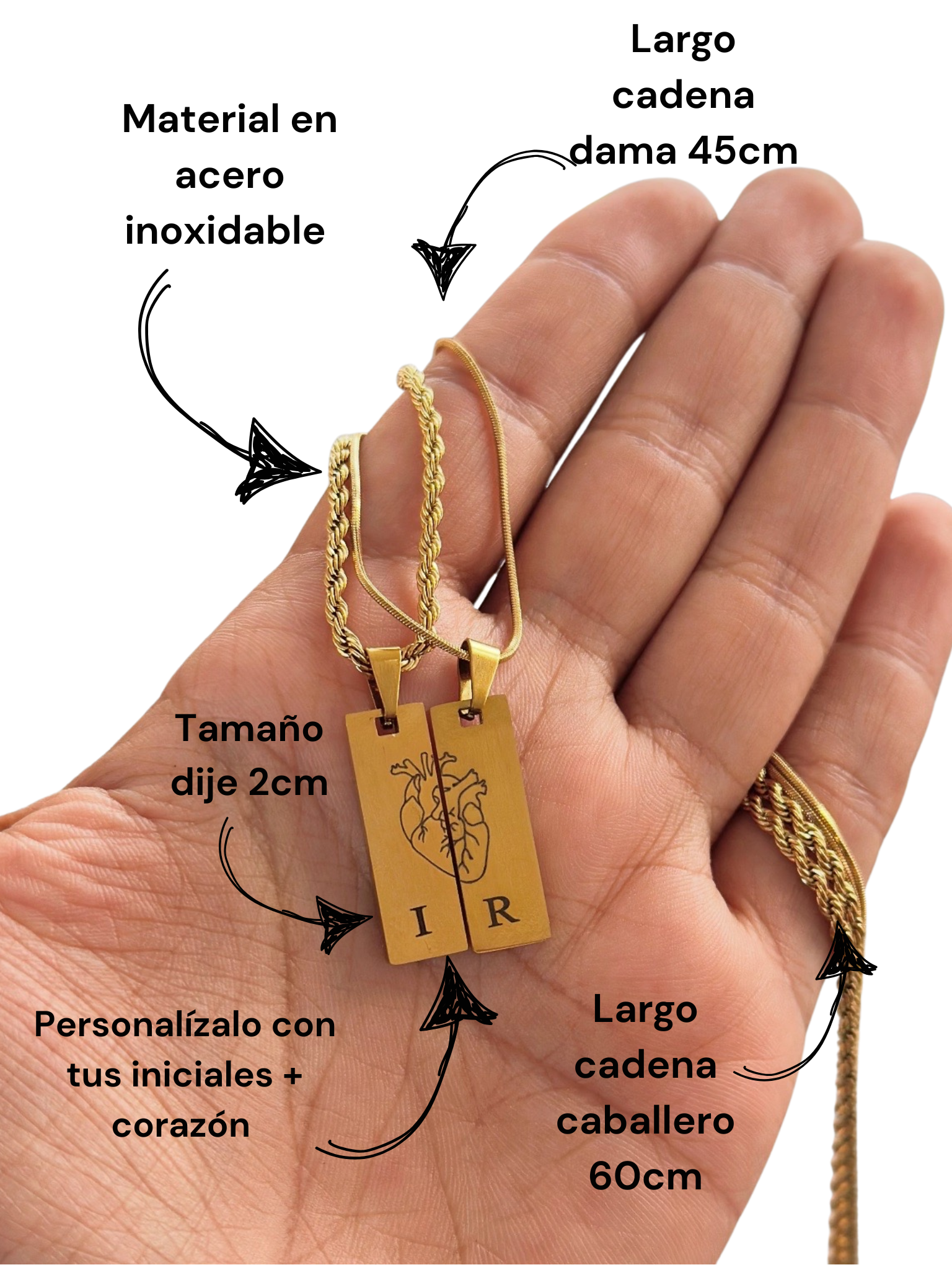 Cadenas personalizadas con dije largo corazón dorado